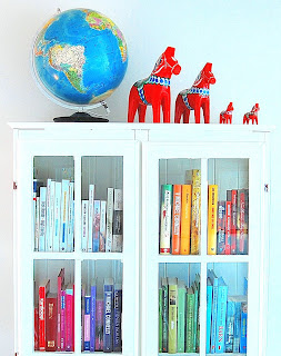 Sorterade böcker i ett bokskåp efter färger idag!
