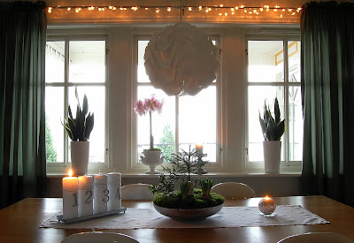 I år är julen grön, vit och silvrig hos oss! Grönt är skönt och känns ombonat och mysigt när det är skruttgrått där ute!