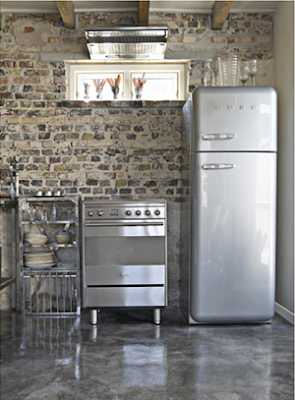 Skulle vilja ha en spis som den på bilden, men jag gissar att det är gasplattor, och det vill jag inte ha. Är nog en lite för orolig person för att det skulle funka. Ni vet ”kolla tusen gånger att gasen är avstängd, vända på väg till jobbet för att kolla en extra gång osv”! Så en liknande spis med elplattor står på önskelistan! Vad säga om kylen? Bilden får tala för sig själv…