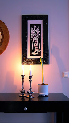 Tavlan har vi köpt på Borneo och den ramen var brun, men den har också fått sig en omgång av penseln!