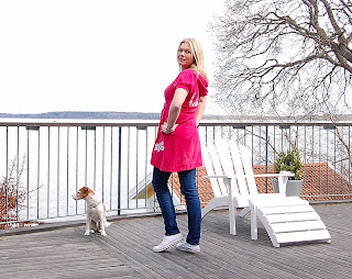 Självklart växer mängder av underbara mörkröda klätterrosor runt fasaden!