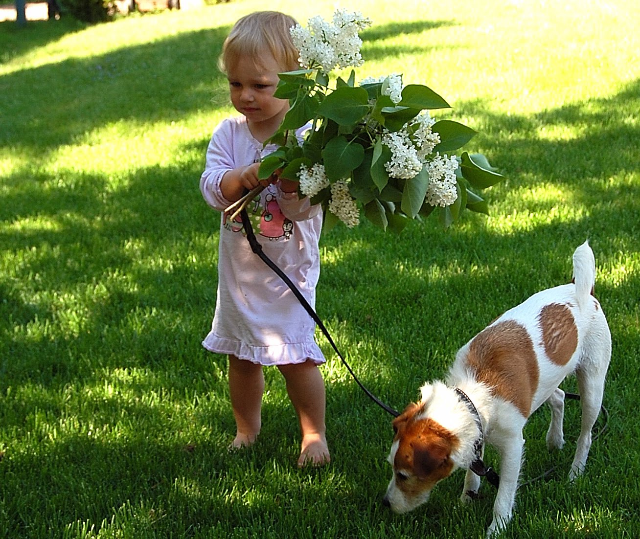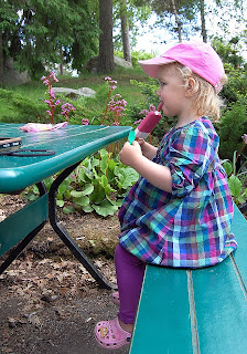 Äpplet faller inte lång ifrån trädet, eller hur är det man säger? Den lilla damen tycks ha ärvt sin mors intresse för blommor och trädgårdsskötsel!