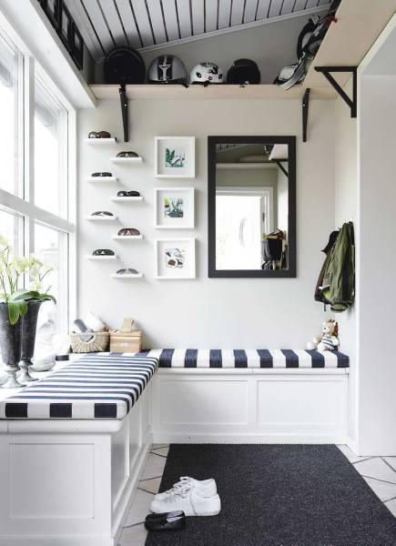 Skulle kunna tänka mig något liknande i vår pyrelilla hall/kapprum som jag måste ta tag i till hösten!