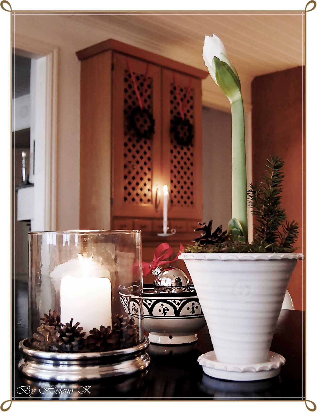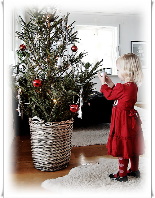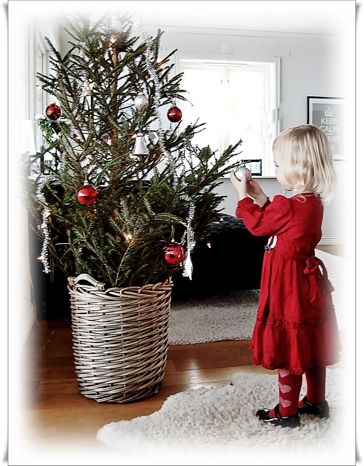 Förra året hade jag bara vitt och silver i granen, det blir nog något liknande i år, möjligtvis något mindre då, eftersom det mesta hamnade på tippen… Annars kanske jag bara släpper det hela rätt och slätt. Plockar fram alla kartonger med tusen färggranna kulor, och 20 meter halvtasigt glitter, och låter barnen fixa hela granen!