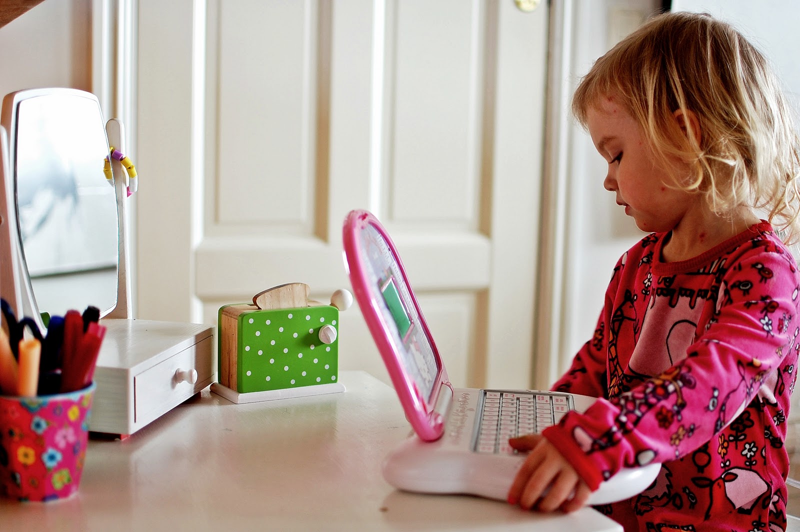 och spegeln till en perfekt ”blogghörna” för en liten tjej! Lillan är hur nöjd som helst