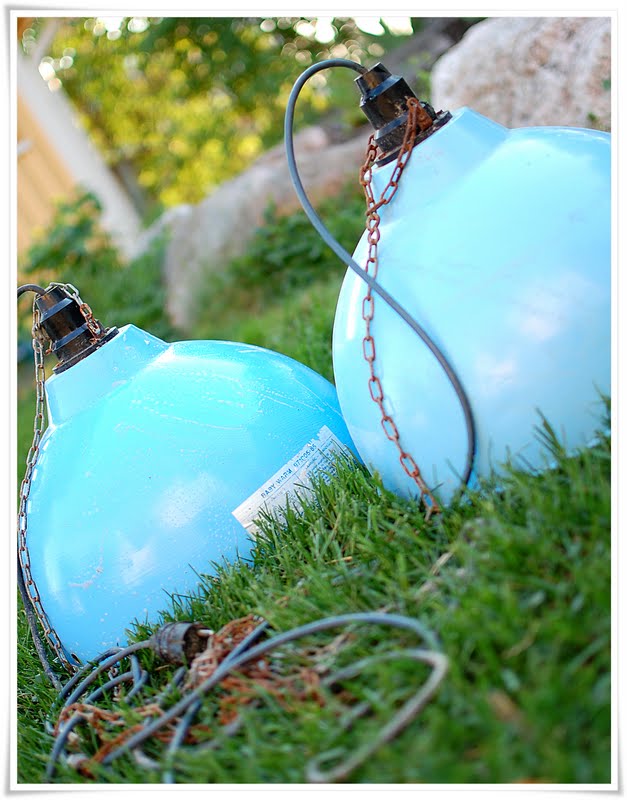 köpt på Blocket och själv fixat till. Nåväl, själv var väl att ta i, för det är världens bästa pappa (nämligen min pappa) som fixat det elektriska med tygklädd sladd och allt, men det är jag själv som målat dem, både invändigt och utvändigt!