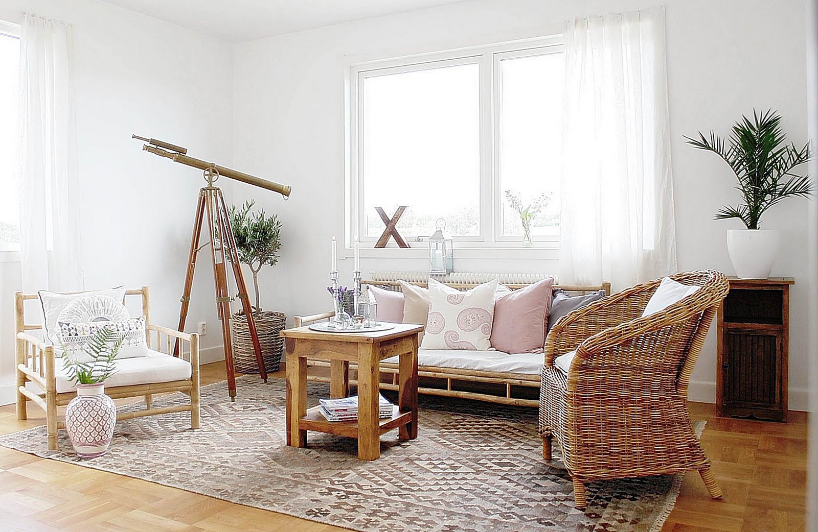 och man inte har ett stageingföretag med ett lager av möbler och grejor att välja bland? Jo, man får helt enkelt plocka från sitt eget hem och komplettera med lånade finfina saker från härliga Tullhuset Living. Söta Jeanette hjälpte mig i morse att välja ut de vackra kuddarna i soffan! Soffan och fåtöljen till vänster, som ni säkert känner igen är mina fina ”bambusar” från Tine K, som jag också köpt på Tullhuset. Day Home kuddarna i fåtöljen är från Atelje Fåtöljen. Den fina rosa mönstrade Tine K krukan kommer också den från Tullhuset.