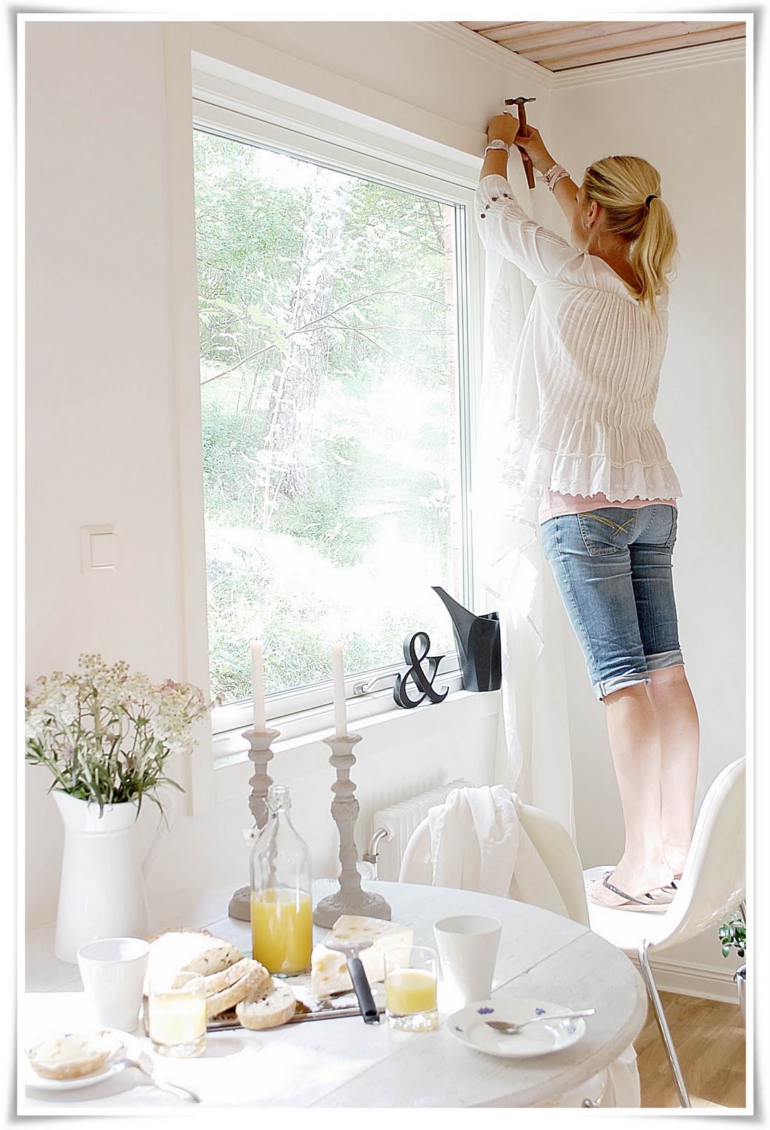 Två stadiga snickarkillar hade jag till mitt förfogande hela dagen, så jag behövde inte bära en endast pryl! Lyxigt va?! Den första tavlan bad jag dem spika upp, men det kändes så fånigt, att jag bad dem att få låna hammaren och spiken själv istället! Herre Gud hur många tavlor har