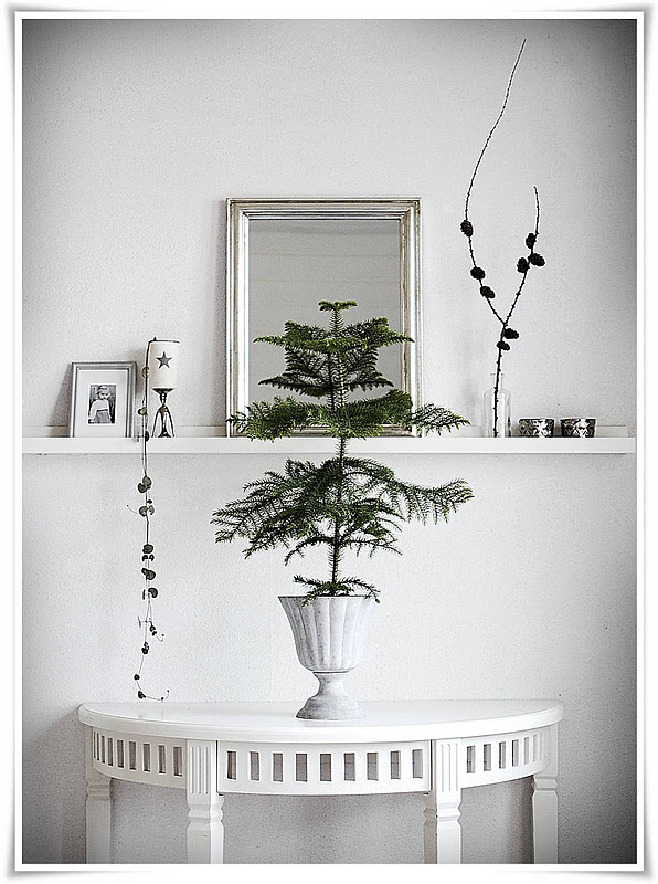 Jag har inte köpt något nytt till den hörnan, annat än rumsgranen, utan har bara fixat med sådant som fanns här hemma. Kanske gör jag något längre fram och då blir det definitivt en byrå av något slag, för vi behöver verkligen förvaringsutrymme.