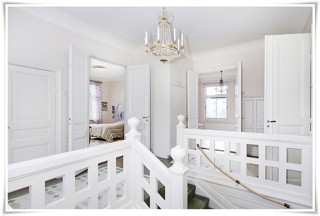 Idag tänkte jag bjussa på några fler bilder från huset i stan. Kolla takhöjden (typ 3 meter någonting) och de helt fantastiska pardörrarna in till rummen på övervåningen.