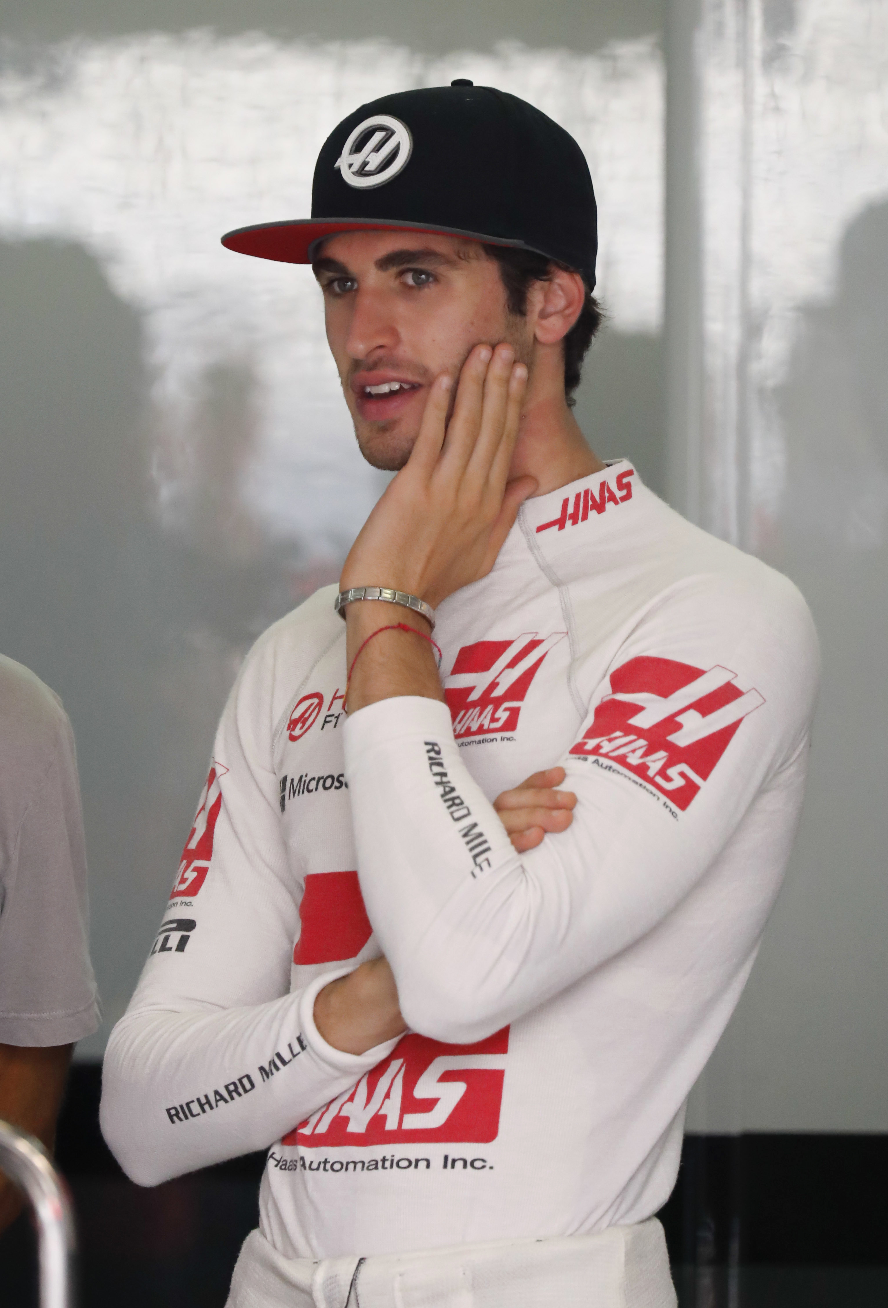 Haas reserve driver Antonio Giovinazzi of Italy stands at his team’s garage during the first practice session for the Malaysian Formula One Grand Prix at Sepang International Circuit in Sepang, Malaysia, Friday, Sept. 29, 2017. (AP Photo/Vincent Thian)