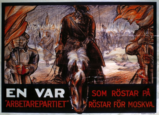 Vill man vara lite sarkastisk kan man vända deras egen hysteriska skrämselretorik mot dem själva och låna lite från den klassiska affischen från Högerns ungdomsförbund i Kosackvalet 1928: